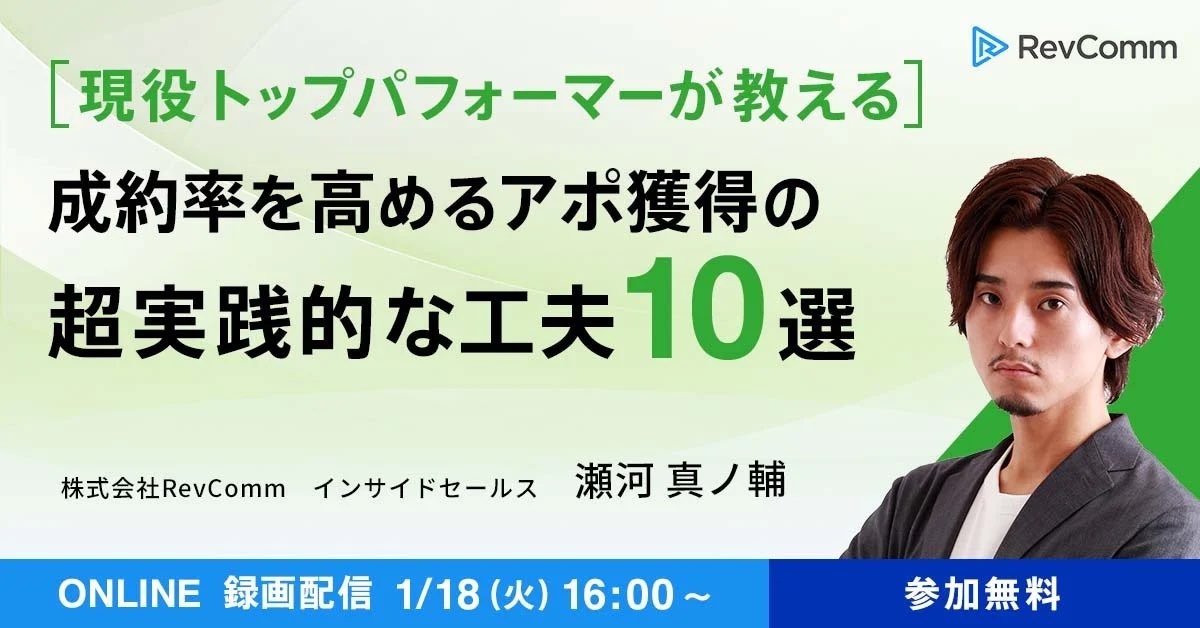 2022年1月18日(火)にRevComm主催セミナー「成約率を高めるアポ獲得の超実践的な工夫10選」を開催します。