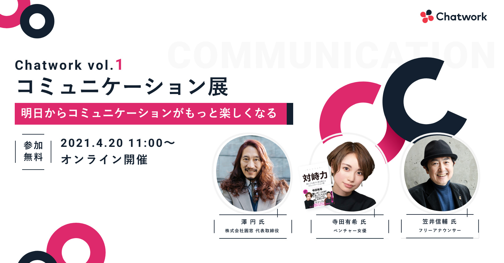 コミュニケーション展はChatworkが企画・運営する「コミュニケーション」をテーマにしたオンラインイベントです。