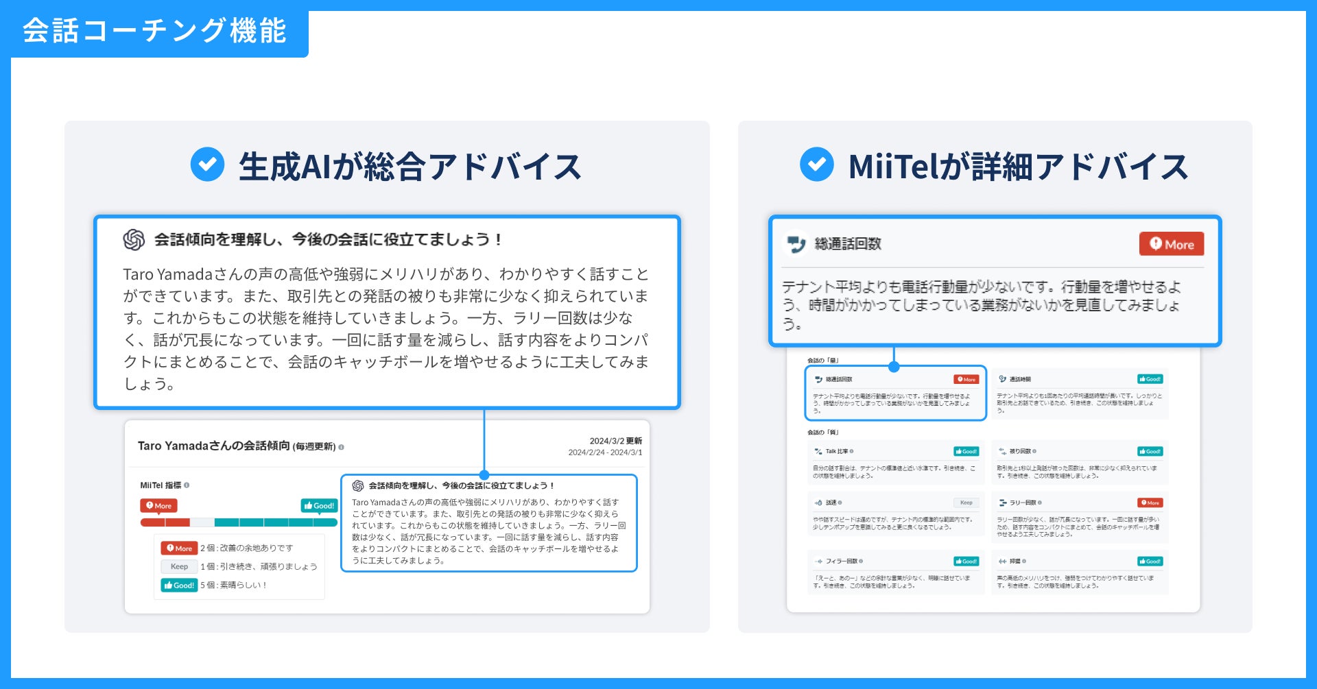 「分析力のMiiTel」から「伴走するMiiTel」への第四弾 AIが自動で改善ポイントをアドバイスする「会話コーチング機能」をリリース