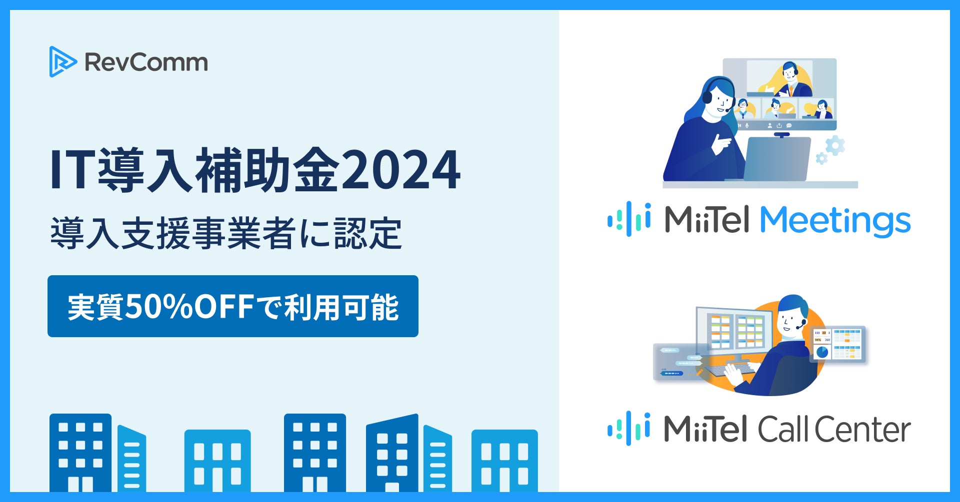 レブコムが提供する「MiiTel Meetings(ミーテルミーティング)」ならびに「MiiTel Call Center(ミーテルコールセンター)」が、「IT導入補助金2024」の対象ツールとして認定されました。